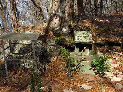 祀られている小さな祠 天子ヶ岳の山頂は広場のようなところです。 その一隅に小さな石の祠が祀られていました。 |