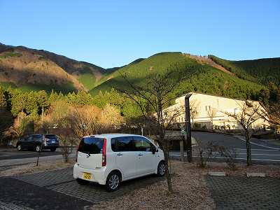 休暇村富士第2駐車場 白い建物が休暇村富士で、その南にある無料の第2駐車場を利用させてもらいました。 休暇村敷地内の駐車場は有料だそうです。 身支度をして出発します。 〔休暇村富士第2駐車場 発=7:45〕 |