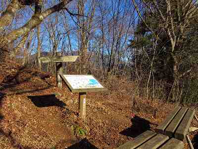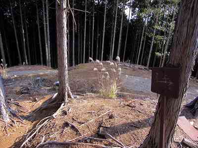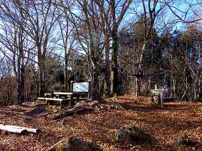 富士見台へ 広い山頂ですが林に囲まれています。 休憩していた男性が、『展望台はあっちだよ』、と教えてくれました。 見ると広場の真ん中に、富士見台を示す案内標示もありました。 |