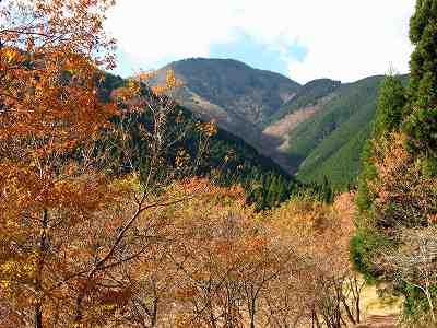 東海自然歩道出合まできて、やっと展望が開けました。 設置されたベンチに座っていい景色を眺め、写真を撮ったりして小休憩です。 そこへキャンプ場登山口方向から2人の山ガールが登ってきました。挨拶を交わし、 私は出発することにしました。 〔東海自然歩道出合 発=8:45〕 |