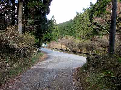 林道出合・天子ヶ岳登山口 林の中を200mほど下ってくると舗装された林道に降り立ちます。 路肩駐車も可能な天子ヶ岳の登山口です。 私はここから林道をスカイ朝霧の方へ下りますが、白糸の滝へ行く人は、さらにこの林道を横断して 林の中の登山道を下ることになります。 〔林道出合=12:10~12:15〕 |