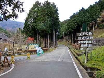 天子の森オートキャンプ場管理棟 林道入口あたりからはずっと天子の森オートキャンプ場にそって歩いてきました。 そしてここがその管理棟があるところです。 緩い坂道とはいえ舗装道路を歩いて戻るのは楽しくないですねえ。 〔天子の森オートキャンプ場管理棟=12:55〕 |