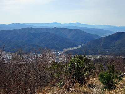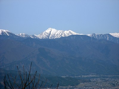 南南東方向には南アルプスです。 甲斐駒ケ岳と仙丈ヶ岳は大きく見えます。 北岳は仙丈ヶ岳の左裾に少しだけ頭を出していました。 そのほか御嶽山や中央アルプスの空木岳、経ヶ岳なども見えていました。 |