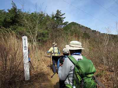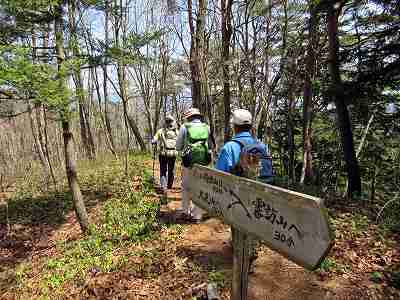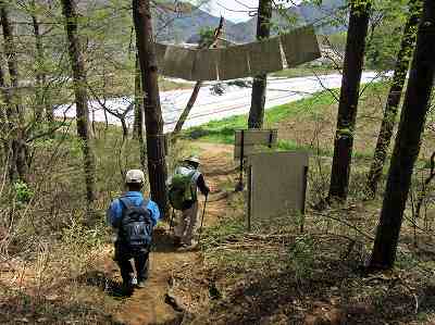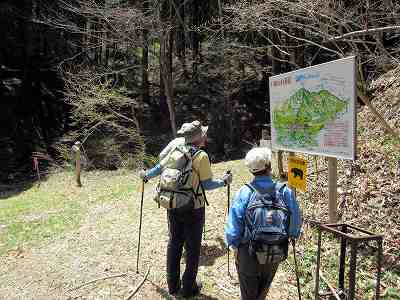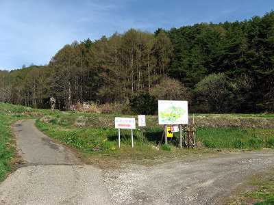 オキナグサが咲くのは5月の連休あたりのようです。ただ、年によって前後にずれるので ネット上の山行報告を毎日のようにチェックし、ようやく 『4月28日に咲いているのを見てきた』 という情報を得ました。 そこで、仁べえさんなど山友さん3人に声をかけ、一緒に出かけることにしたわけです。 霧訪山の登山コースは3つあります。1つは南東側の北小野から登るかっとりコース、 2つ目は北東側の うとう峠から大芝山を経て登るうとう峠コース、3つ目は北の山ノ神自然園から のコースです。 われわれは遠くから行く関係でスタートが遅い時間になるので、最も短時間で登れる北小野からの かっとりコースを選択することにしました。霧訪山から大芝山への稜線に花が多いというので 大芝山まで行ってくることにします。 伊北ICで降り、中央本線小野駅北西にある登山口駐車場まで行きます。 〔北小野かっとりコース登山口駐車場 NAVIマップコード 75 190 264 *70〕 |