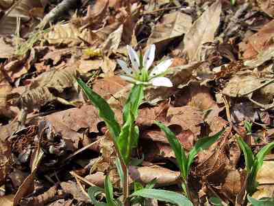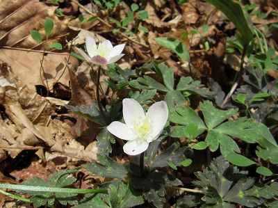 ニリンソウ ニリンソウ(二輪草)も見つけました。 一度見つけると、その周辺にはたくさんあるんですね。 |