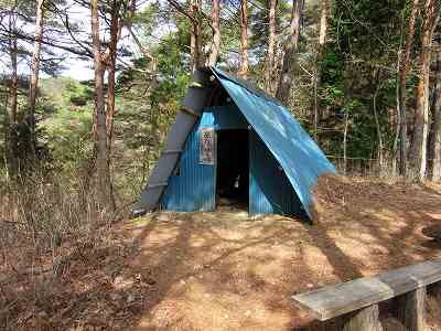 現・新登山道分岐のすぐ上に避難小屋がありました。 波トタン張りの簡素なもので、内部をのぞくと木のベンチが両側に置いてありました。 |