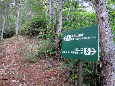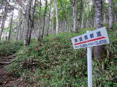 鉢盛坂新道 また10分くらい行ったところに、鉢盛坂新道という標識がありました。 ここで山頂まであと1.3km、約50分だそうです。 この先の別の案内板には、 『最後の長坂、がんばって』 と書いてありました。 急登ではないものの、このあと長い登りが続きました。 〔鉢盛坂新道=11:00〕 〔途中休憩=11:30~11:35〕 |