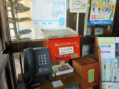 正面入口を入ってすぐ左側に赤い郵便受があります。 その中になまえが書かれた封筒があり、ゲートのカギと入山ゲート通行許可書が入っていました。 なお、登山道整備のため、1人500円を目安に協力金をお願いしたいそうです。 協力金箱は右下にあります。 〔朝日村役場 発=8:10〕 |