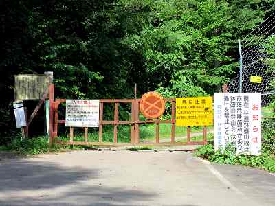 林道ゲートは朝日村役場から約6km、車で10分くらいだと思います。 ここがゲートなので、鍵で開け閉めして通ります。 林道はダートですが細かい砂利の道なので乗用車でも、軽自動車でも大丈夫です。 〔鉢盛山林道ゲート=8:20〕 |