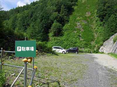 ゲートから約10kmあるので、30分ほどかかって駐車場に着きました。 登山口の100mくらい先に駐車場があり、 14~15台駐車できますが、先客はちょうど登山口へ向かおうとしている女性の車だけでした。 なお、村が駐車可能な分だけゲート通行許可をしますので、満車で駐車できなくなることはありません。 〔新登山口駐車場 着=8:50〕 |