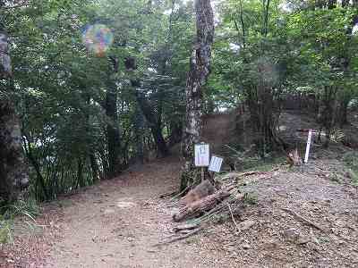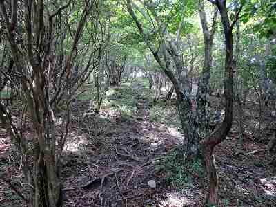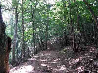 歩きやすい登山道 歩きやすい登山道でした。 車も通れそうな道なので、入り口には『自動二輪、原付、自転車等進入禁止』という立札が設置されて いました。 |