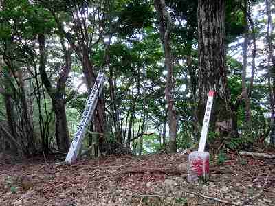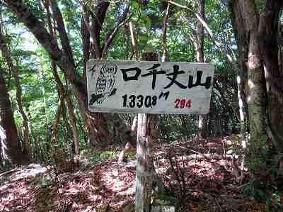 口千丈山(1,331m) ハイキング気分で歩くこと40分、口千丈山に着きました。 確かにピークではありますが林の中で眺望はありません。 〔口千丈山=9:10〕 |