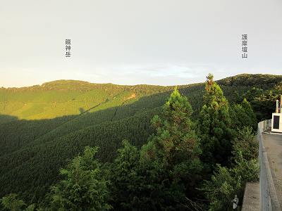 駐車場から15分足らずで山頂まで登ってきました。 東屋があり、その横に『和歌山県朝日夕日百選』のモニュメントが立っています。 ここは夕日がきれいだそうです。 〔護摩壇山 着=7:00〕 |