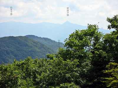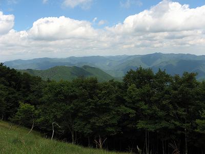 東側の山 東側には仏生ヶ岳や釈迦ヶ岳が遠くに見えていました。 このうち釈迦ヶ岳にはシロヤシオが咲くころに登りたいと思っています。 |