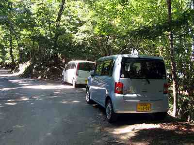 登山口駐車スペース 帰り道で二人連れの人や単独行の人など5人に出会いました。 『いい天気ですね、風が涼しいですね』などと声掛けして往路を戻ってきました。 〔牛首山=12:10~12:20〕 〔口千丈山=12:45~12:50〕 〔奥千丈林道登山口 着=13:25〕 |