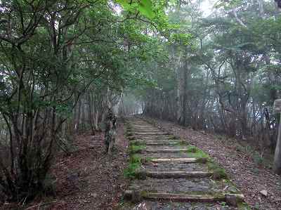 登山口といいましたが、石畳の階段で、途中地道もありますが、遊歩道だそうです。 傾斜も緩いのですいすい登って行けます。 |