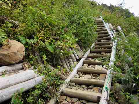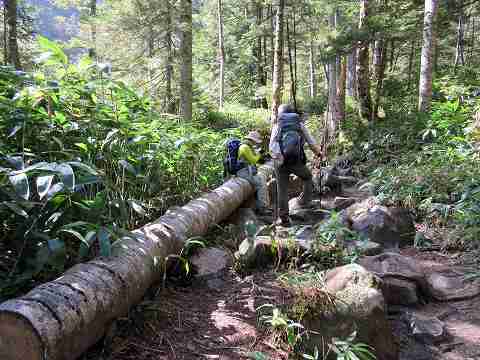 トラバースの道もありました。 このあたりでは4・5人の登山道保全の方が作業をされていました。 『お邪魔します、作業ありがとうございます』と声をかけて通らせてもらいました。 |
