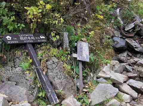 沢コースなので水には恵まれた登山道ですが、ここが最終の水場となります。 コップが備えられていたので1杯飲ませてもらいましたが、実に冷たいおいしい水でした。 〔最終水場=12:25~12:30〕 |