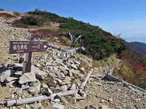 紅葉 2500m以上は紅葉が進んできていました。 常念岳を背景にして紅葉がきれいです。 〔胸突八丁=9:40~9:50〕 〔王滝ベンチ=10:55~11:00〕 |