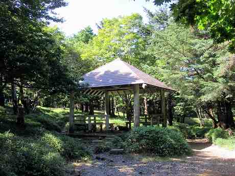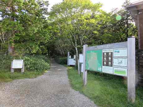 正木峠・展望台 ずっと歩いていたいような森の中を30分、最後は少し登って正木峠に着きました。 この奥に海が見える展望台があり、左に行くと日出ヶ岳山頂への道です。 〔正木峠・展望台 着=8:25〕 |