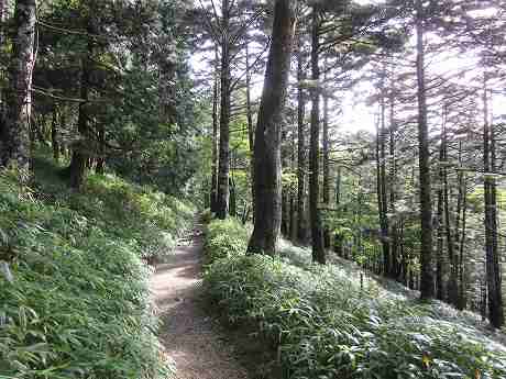 一帯は要所が木道や石段、石畳などで整備され自然庭園の中を歩いているのような感じでした。 台風などによってトウヒなどの樹林が破壊されましたが、関係者は原始林保護の活動を地道にされているようです。 ササの原に変わってしまって自然保護という面では問題かもしれませんが。広大な庭園風景とてはそれなりの良さも あると感じました。 したがって大台ヶ原のハイキングコースは遊歩道みたいでたくさんの人たちが楽しんでいました。一方、尾鷲道は この日訪れたのは私一人だけ。展望はなかったものの静寂な山歩きを味わってくることができました。 この日は台風が持ち込んだ熱気で下界は猛暑日だったようですが大台ヶ原はいたって涼しい別天地でした。 また、ツクシシャクナゲなど花の季節に行けばまた楽しいかもしれないとも 思った大台ヶ原でした。 |