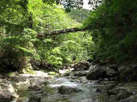 分岐まで戻りシオカラ谷への道を標高差で100mくらい大下り。 この吊橋をわたって帰るのですが、その前に沢に下ります。 冷たい沢の水で顔を洗い生き返りました。 〔シオカラ谷の沢=12:55~13:00〕 〔シオカラ谷吊橋=13:05〕 |