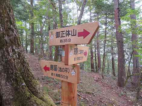 再び鹿留分岐 再び鹿留分岐まで戻ってきました。 休憩せずそのまま下ります。 〔鹿留分岐=11:00〕 |