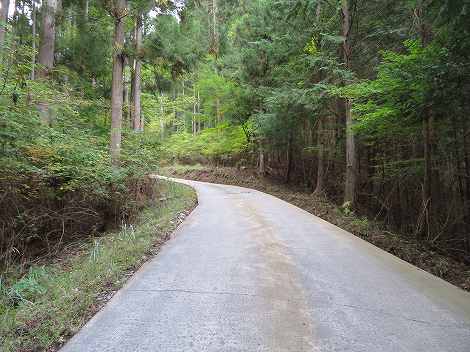 舗装林道を行く 砂利道を走ってきましたがゲートから先は舗装された林道でした。 見た目よりも勾配がきつい。 林道作業の車に7・8台追い抜かれました。登山者の車は乗り入れ禁止なんだよねー。 |