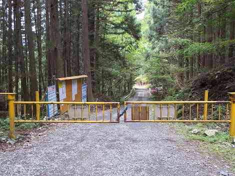 林道ゲート 舗装林道を歩いて林道ゲートまで戻ってきました。到着したのは昼の12時ちょっと過ぎ。 ほゞ午前中に行ってくることができました。 〔水場=11:55〕 〔林道ゲート 着=12:05〕 |