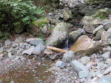 水場 ガイドブックに載っている水場というのは林道横のこの沢をいうんでしょうね。 〔水場=7:50〕 |