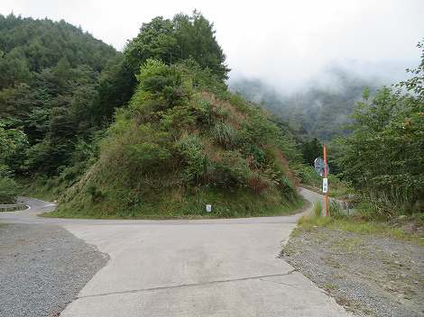 林道分岐 出発して45分、林道が分岐しているところまできました。さてどっちだ?? 〔林道分岐=8:15〕 |