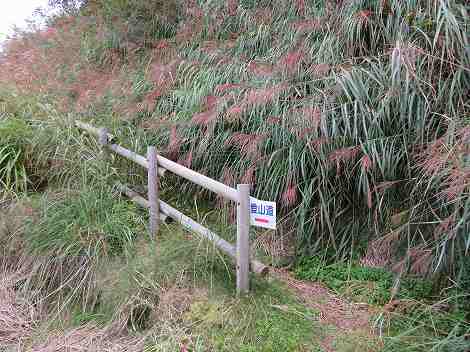 登り口 登り口を見落として進んでしまったんですよね。 分岐から50mほどのところに《←登山道》の案内板がありました。 この間行ったり来たり5分くらいのタイムロスでした。 〔登り口=8:20〕 |