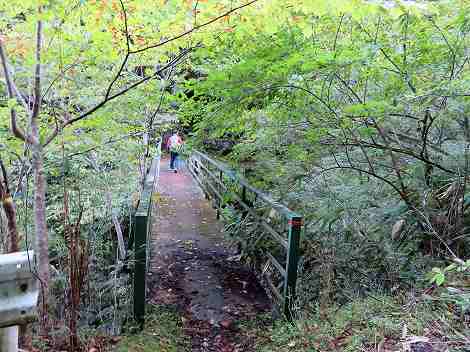 橋をわたって山道へ 駐車場を出発。林道の簡易ゲートから30mほど行ったところにあるこの橋をわたって 山道に取り付きます。 〔大又林道終点駐車場 発=6:40〕 |