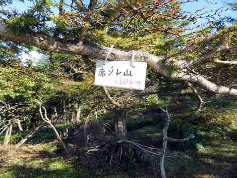 赤ゾレ山山頂(1,300m) 赤ゾレ山に到着。本日2座目。 山頂は南から南西側が開けていました。 〔赤ゾレ山山頂 着=8:55〕 |