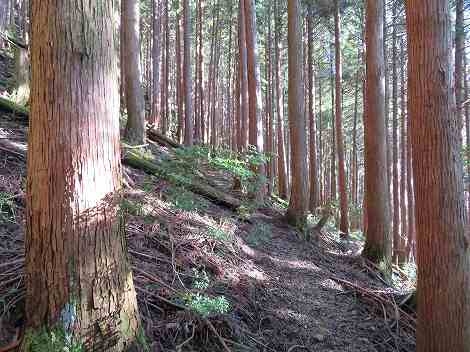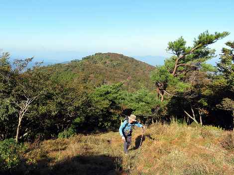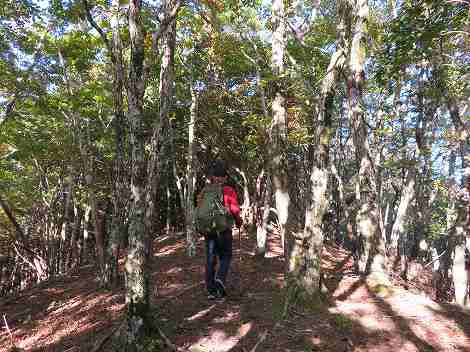 稜線の道を伊勢辻山へ 出発して1時間25分、稜線まで登ってきました。 周回する赤ゾレ山・国見山へは右ですが展望がいいという伊勢辻山へ寄っていくので 左への稜線を行きます。 〔稜線出合・分岐=8:05〕 |