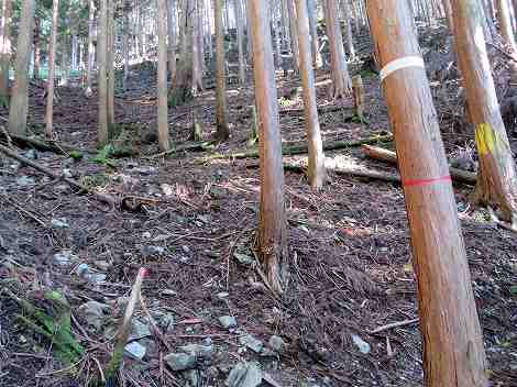 伊勢辻山分岐(バリルート) 休憩して10分弱登ったところが伊勢辻山へ直登する分岐でした。 明確な分岐表示はありませんが他の人の軌跡を見るとここから登っているようです。 バリルートだと思うのでわれわれはそのまま楽な通常コースを行きます。 〔伊勢辻山分岐=7:55〕 |