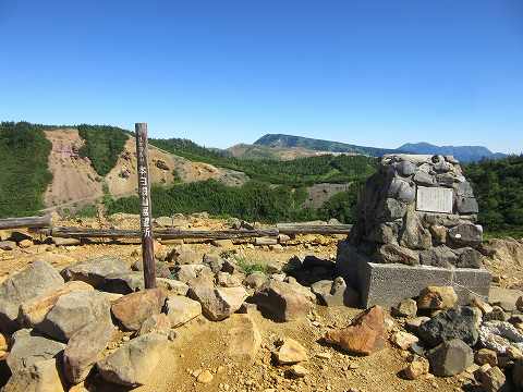 本白根山展望所(2,145m) 本白根山展望所まで登ってきました。 後ろに見える山は中央が横手山(2,307m)で右奥が岩菅山(2,295m)です。 〔展望所=8:45〕 |