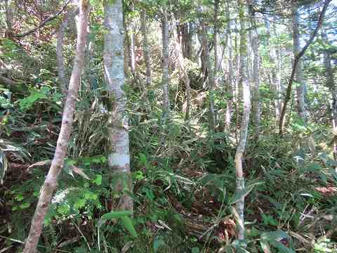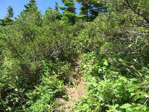 2っ目のヤブへ 本白根山山頂最高点へはヤブ漕ぎがきつく迷いやすいと聞いていました。 ただ、最初のヤブは数メートルなので簡単でした。 そしてここから2っ目のヤブ漕ぎに突入します。 |