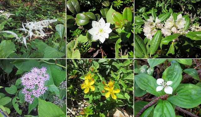 出会った花 なんといってもこの山はコマクサ。どこを歩いてもコマクサが一面に咲いていました。 しかしながら、ほかの花にもたくさん出会えましたよ。 〔上段〕トリアシショウマ、ツマトリソウ、白いシャクナゲ 〔下段〕シモツケ、シナノオトギリ、ゴゼンタチバナ |