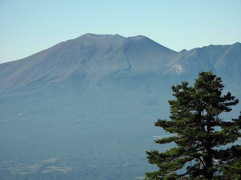 浅間山を望む 少しズームアップしていますが浅間山が間近に見えます。 臼の左端の一番高いところが立ち入り禁止の浅間山山頂で臼の右端が前掛山でしょう。その右手は黒斑山など外輪山ですね。 そのほかの景色はここから少し上がった展望地の方がいいので次に紹介します。 〔カラマツ台 発=7:10〕 |