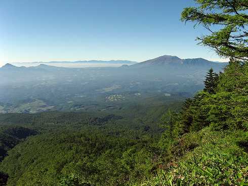 展望所からの眺望 やはり展望所の方が眺望に恵まれています。 この写真は西側を見ています。 中央の本白根山は三角点峰(2,165m)です。 |
