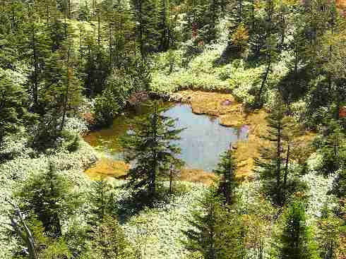 四十八池を見下ろす 裏志賀山方向へちょっと進むと四十八池が見えました。 |