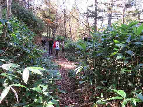 鉢山への分岐 四十八池の南に東屋があり、その先に鉢山への分岐がありました。ここから左へ登っていきます。 〔鉢山への分岐=11:35〕 |