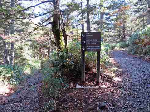 硯川登山口 早朝から横手山に登り車で硯川の無料駐車場へ移動してきました。 志賀山・四十八池などへの登り口は道をはさんで駐車場の反対側にあります。 〔硯川登山口 発=8:15〕 |