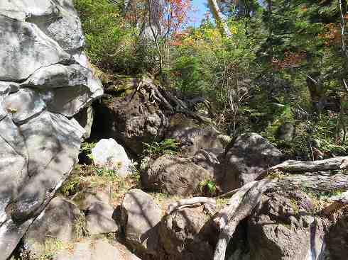 なかなかの急登 やがて志賀山への登りにかかります。 岩場があり、梯子もありで なかなかの急登を強いられました。 |