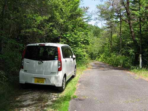 ちんの(鎮野)峠駐車場 浅間山登山口の駐車地から20分ほどで ちんの(鎮野)峠まで移動したきました。 道がカーブするちんの峠の路肩に駐車。登山口はこの先100mくらいのところだと聞いてきました。 〔ちんの(鎮野)峠駐車場 発=13:40〕 |