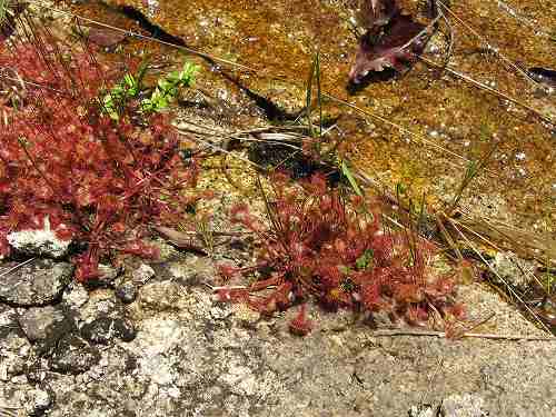 モウセンゴケ発見 明るい岩場でしたが水が流れているところにモウセンゴケがありました。 |