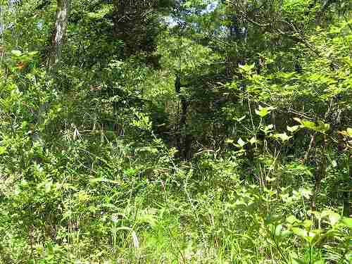 踏み跡を覆い隠すブッシュ 薄いながら踏み跡はあります。しかし、草木が覆い隠すところが多いので 踏み跡を見失うとヤブ漕ぎです。 |