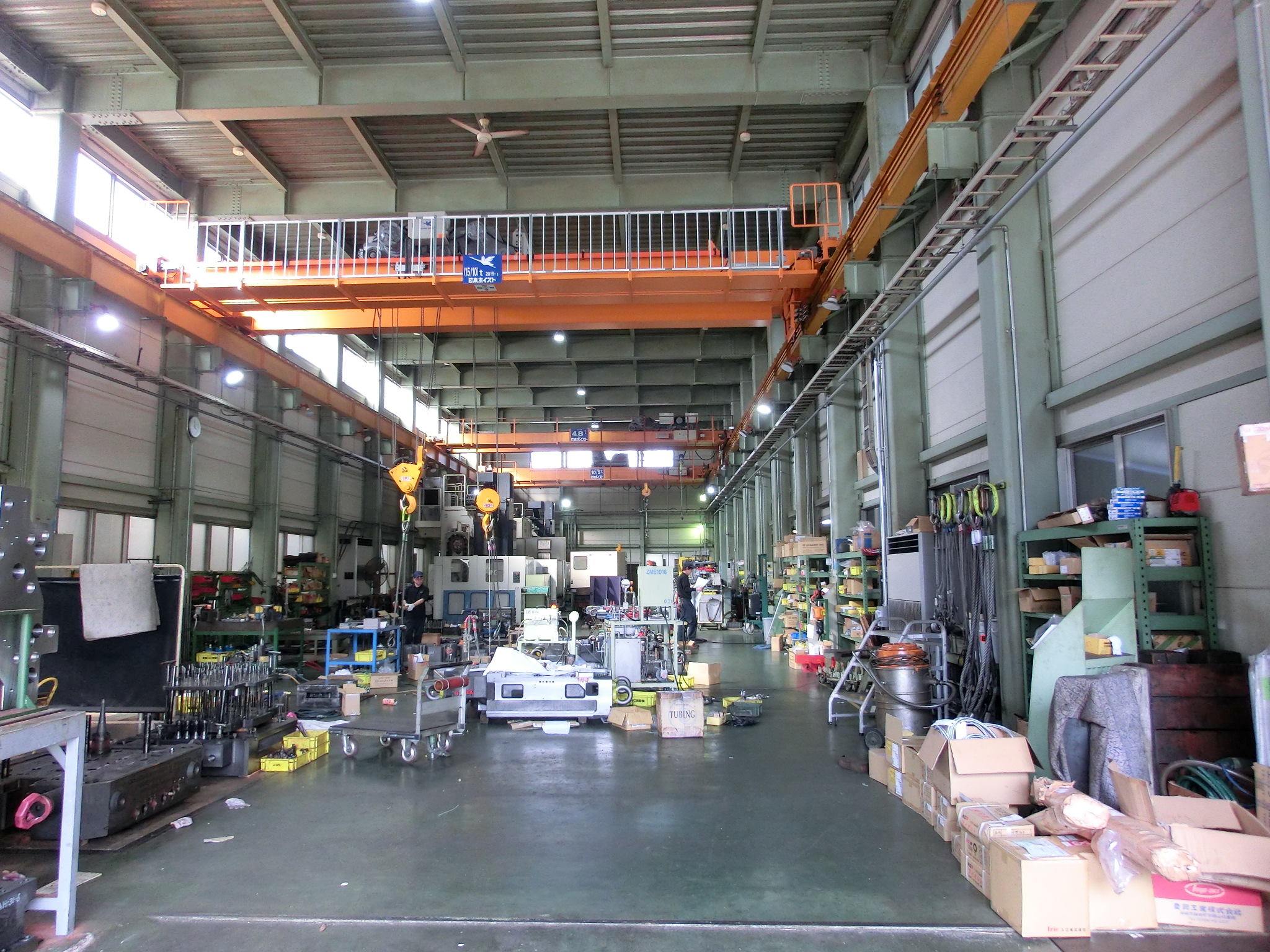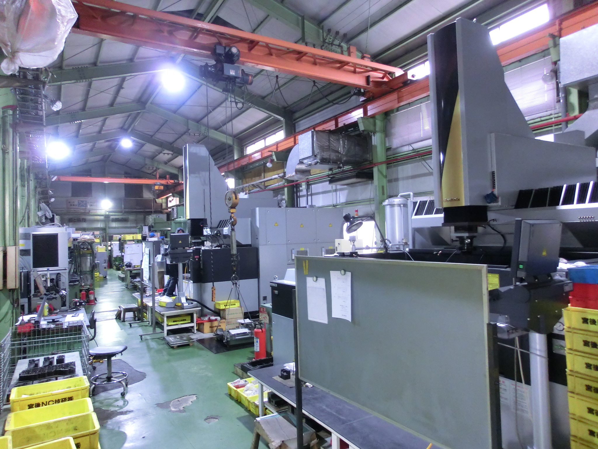 つり上げの能力4.8t~15tのクレーンが3基設置されており、ダイカスト金型では2500tクラス(型総重量約25t)までの 金型の組付けが可能であります。