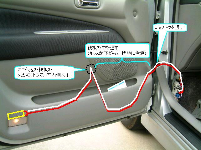 運転席側の配索イメージです。こちらは、単純です。ドア内部で完成します。